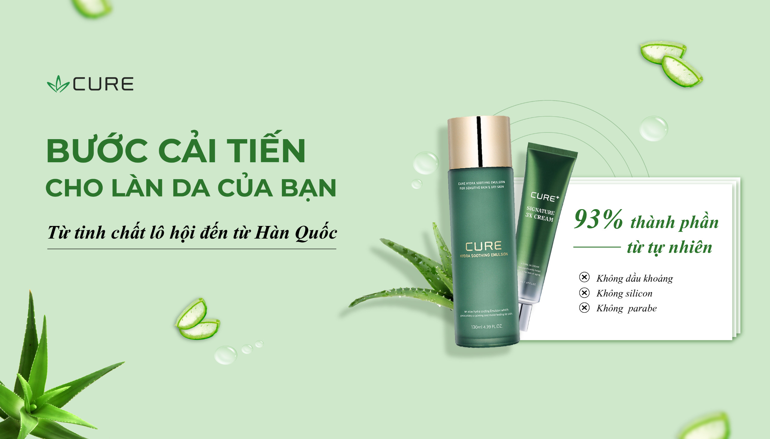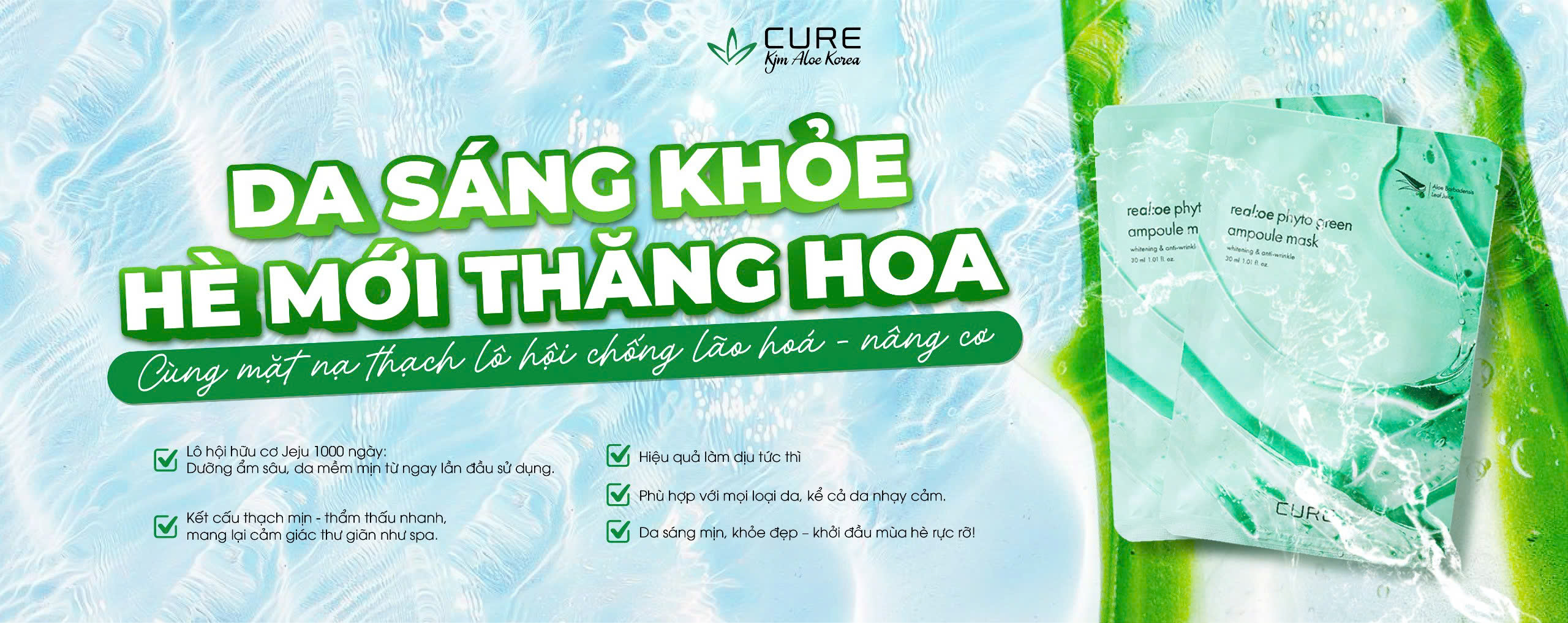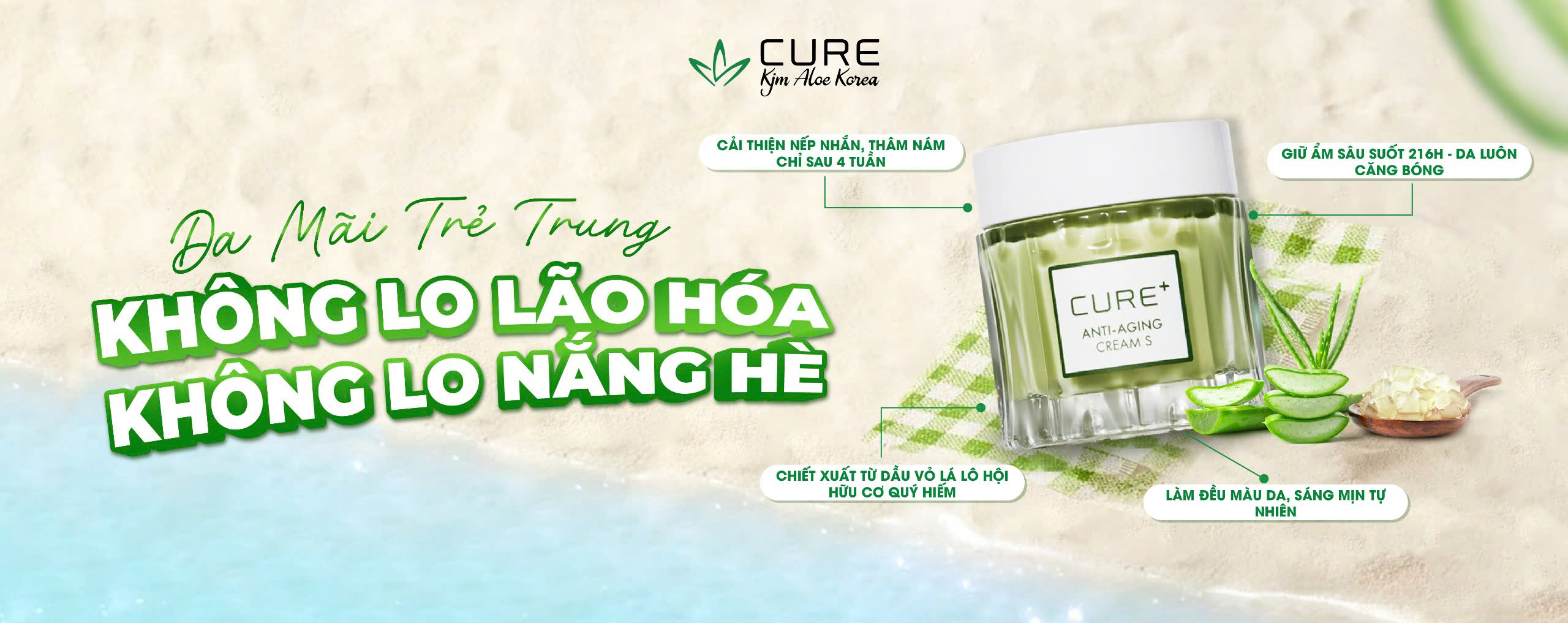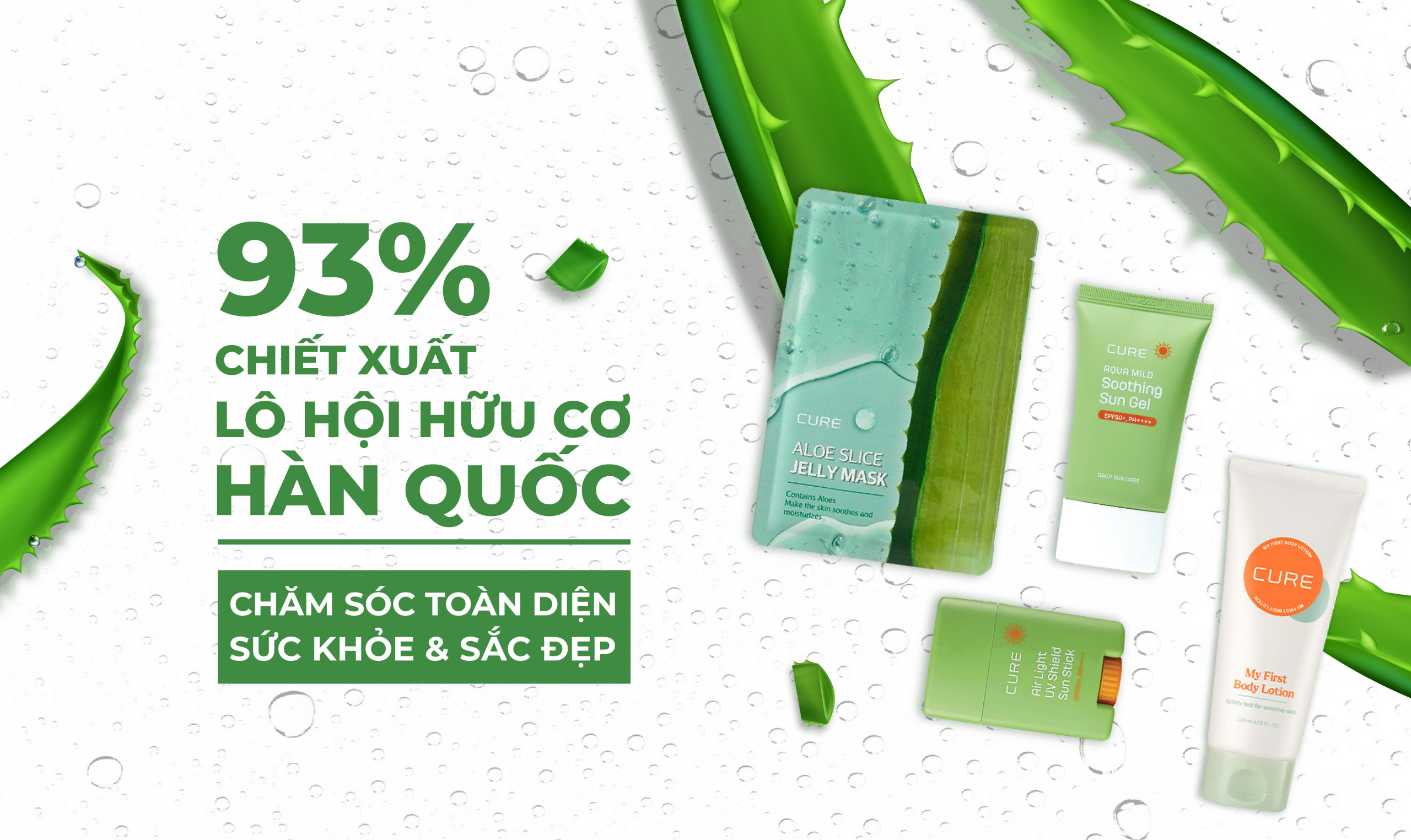 Lô hội được mệnh danh là “nhân sâm Hoa Kỳ”, đã được chứng minh có nhiều tác dụng vượt trội trong làm đẹp và sức khoẻ. Các sản phẩm của Cure Kjm Aloe đều sử dụng tinh chất lô hội độc quyền – chiết xuất từ giống cây lô hội chọn lọc, trồng trong 1095 ngày tại vùng dược liệu riêng tại đảo Jeju – khu vực có đất, nước, khí hậu trong lành nhất Hàn Quốc. Được nuôi trồng trong điều kiện nghiêm ngặt và chế biến bằng công nghệ độc quyền hiện đại nhất được nghiên cứu suốt gần 50 năm, lô hội của Cure Kjm Aloe có lượng dưỡng chất và hoạt tính cao nhất.