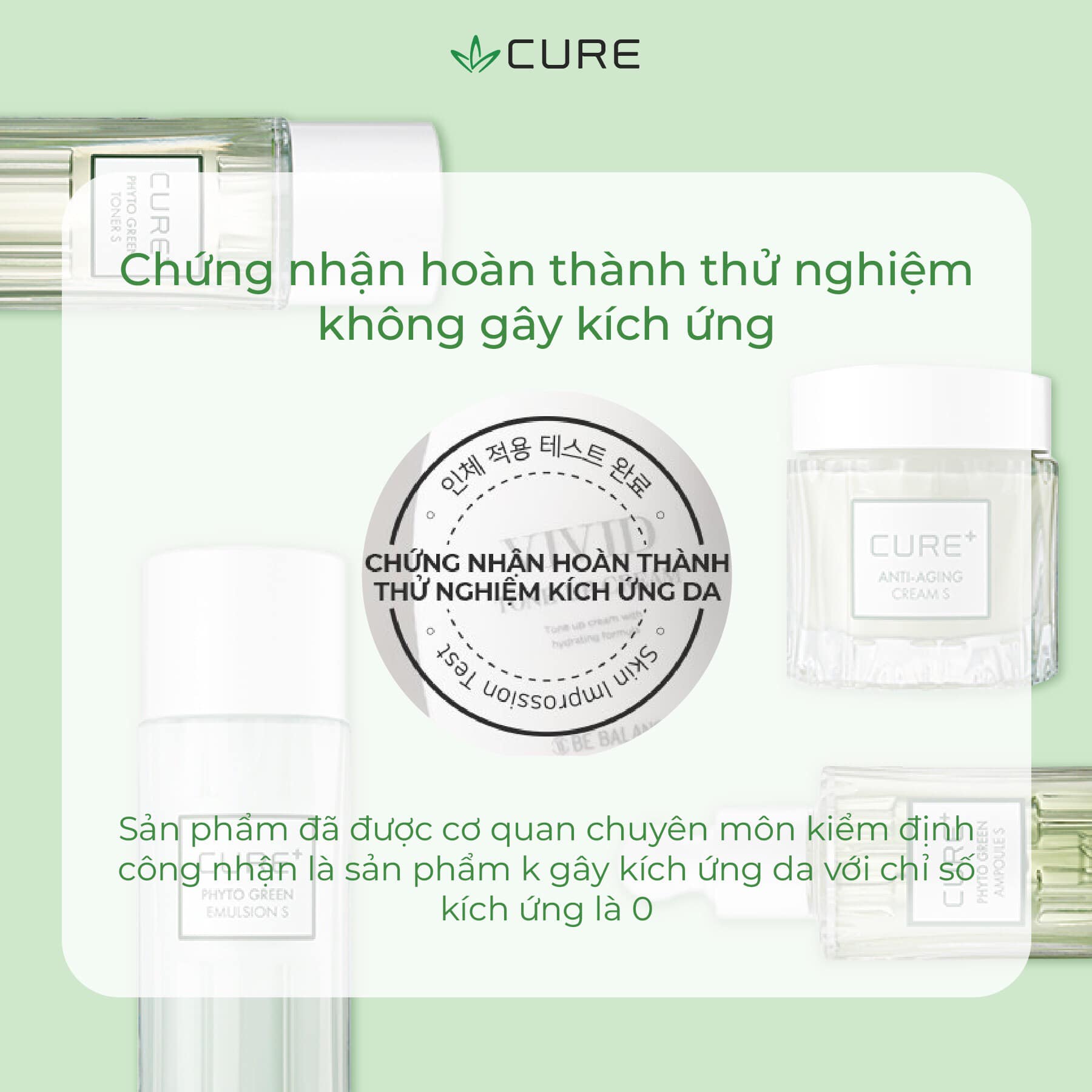 Bên cạnh đó, sản phẩm được sản xuất với công nghệ hàng đầu, sở hữu lượng bằng sáng chế về lô hội nhiều nhất thế giới và được chứng nhận hoàn thành thử nghiệm không gây kích ứng da. Vì thế khách hàng có thể an tâm sử dụng sản phẩm của Cure giúp cho bạn xóa bỏ mọi nỗi lo về làn da nhạy cảm.