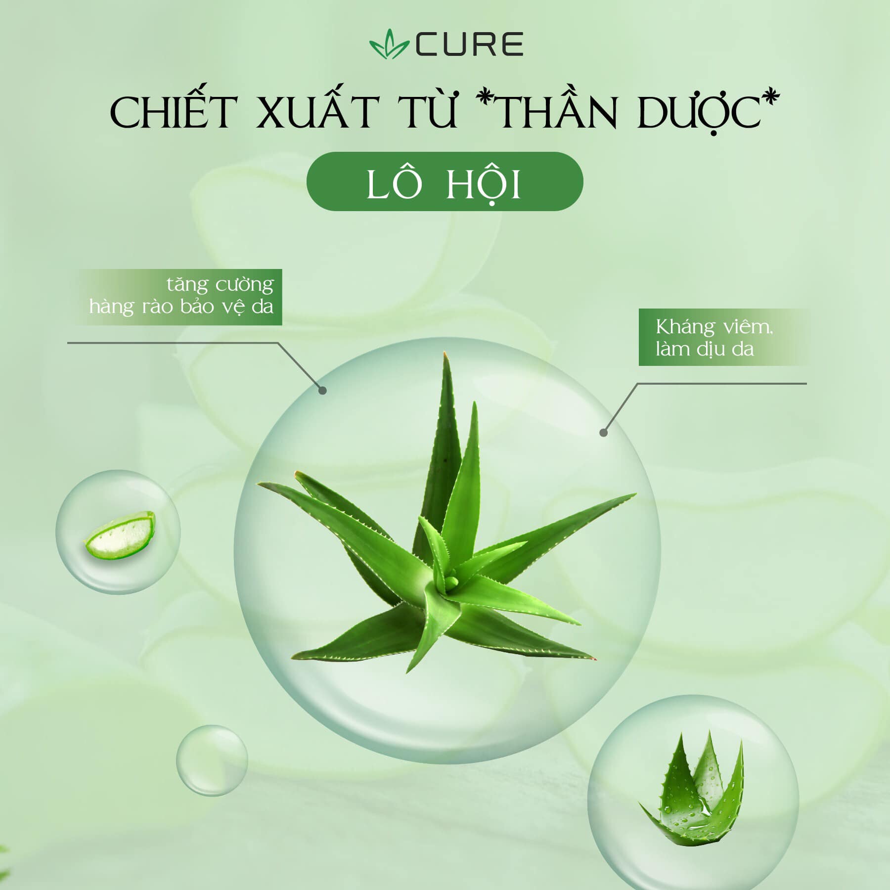 Bộ sản phẩm Cure với nguyên liệu chính được chiết xuất từ cây lô hội – một loại cây được mệnh danh là “Nhân sâm Hoa Kỳ” với những công dụng tuyệt vời trong việc phục hồi và chữa lành làn da của bạn. Tinh chất lô hội cũng chính là nguồn tinh chất độc quyền đến từ nhà Cure, được nuôi trồng và chiết xuất tại trang trại hiện đại, đảm bảo tại đảo Jeju (Hàn Quốc).