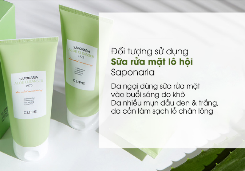 Khuyến cáo cho đối tượng sử dụng sữa rửa mặt lô hội Saponaria gồm da ngại dùng sữa rửa mặt vào buổi sáng do khô, da nhiều mụn đầu đen & trắng, da cần làm sạch lỗ chân lông. Muốn đa được sạch sâu và nhẹ dịu mỗi ngày, đừng bỏ lỡ siêu phẩm Cure Saponaria của nhà Cure lô hội Hàn Quốc nhé!