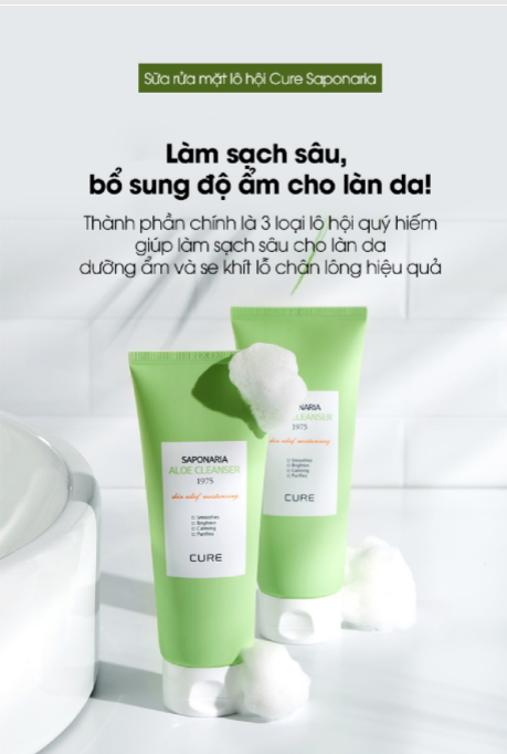 Sau bước tẩy trang cho gương mặt thì việc làm sạch với sữa rửa mặt là một bước “double clean” cực kì quan trong cho làn da. Điều này sẽ loại bỏ hoàn toàn lớp cặn trang điểm còn sót lại – nguyên nhân chủ yếu gây ra các vấn đề bít tắc lỗ chân lông. Để gấp đôi làm sạch cho da mặt, thương hiệu Cure tại Hàn Quốc đã ra mắt sản phẩm sữa rửa mặt lô hội Cure Saponaria sạch sâu và dịu nhẹ.